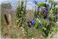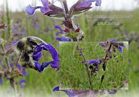 Der Sommer versprach trocken und sehr heiß zu werden... Zum Glück hält er nicht immer was er verspricht, er ist ja auch noch lange nicht vorbei. Aus nächster Nähe betrachtet, da zeigt der 'Hasenklee' wie wunder- schön er doch ist! Doch weitläufig bestimmt die 'Graukresse' das Dünenbild. Und mittendrinn' in diesem fantastischen Blütenmeer, da entdecke ich sie... Die schwarze Biene, die 'Köhler Sandbiene,' jedes Jahr finde ich sie hier, um diese Zeit... ... vorwiegend naschend, an den Blüten von 'Thymian' und 'Graukresse.' Ganz unten im Bild, dort sammelt sie wertvolle Pollen. Doch mitten in der Graukresse, ist eine 'Malvenbiene' auf der Suche nach (für sie) geeigneteren Blüten? Diese Bienenart lebt und sammelt NUR von Malven-Blüten und darin schlafen diese Bienen auch. ...Zumindest die Männchen, ein Weibchen in dieser regungslosen Stellun...